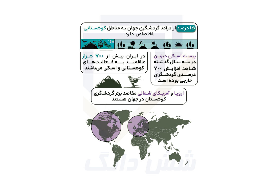 بر اساس مطالعات صورت گرفته توسط دپارتمان مطالعات سرمایه گذاری گردشگری شش دانگ،فعالیت های کوهستانی مانند اسکی،ارزش افزوده زیادی را برای گردشگری خلق می کند.برخی از اطلاعات استخراج شده ملی و جهانی گردشگری مدیران توسط شش دانگ را در تصویر زیر مشاهده می نمایید.