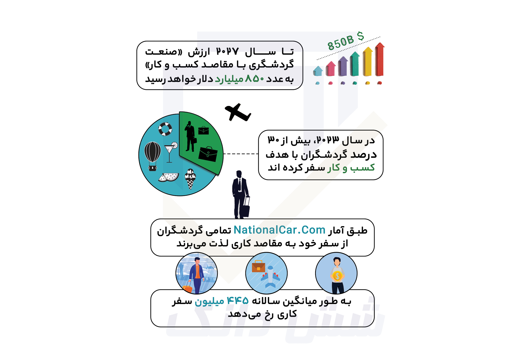 بر اساس مطالعات صورت گرفته توسط دپارتمان مطالعات سرمایه گذاری گردشگری شش دانگ،سفرهای تجاری بخشی جدایی ناپذیر از زندگی مدیران می باشد که این روند در طی ۴ سال آینده ادامه دار بوده و رشد قابل توجهی را در بحث گردشگری تجاری تجربه خواهد کرد.برخی از اطلاعات استخراج شده ملی و جهانی گردشگری مدیران توسط شش دانگ را در تصویر زیر مشاهده می نمایید.