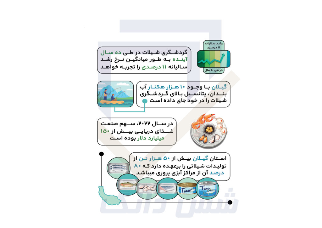 بر اساس مطالعات صورت گرفته توسط دپارتمان مطالعات سرمایه گذاری گردشگری شش دانگ،غذاهای دریایی مانند ماهی همواره صنعت پررونقی بوده است که می تواند سود گردشگری زیادی را برای کشور رقم بزند.برخی از اطلاعات استخراج شده ملی و جهانی گردشگری شیلات توسط شش دانگ را در تصویر زیر مشاهده می نمایید.
