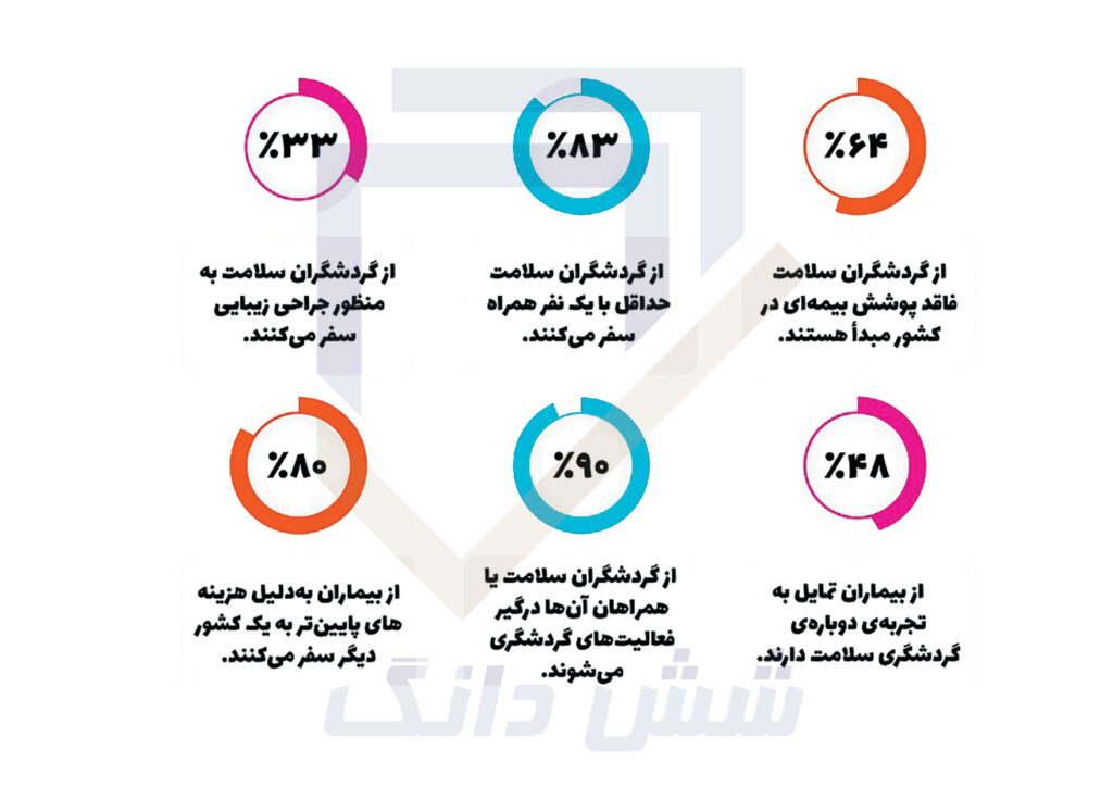 بر اساس مطالعات صورت گرفته توسط دپارتمان مطالعات سرمایه گذاری گردشگری شش دانگ، گردشگری تندرستی در طی سالیان اخیر در دنیا و ایران همواره مورد توجه بوده که برخی از اطلاعات استخراج شده در این مورد توسط شش دانگ را در تصویر زیر مشاهده می نمایید.