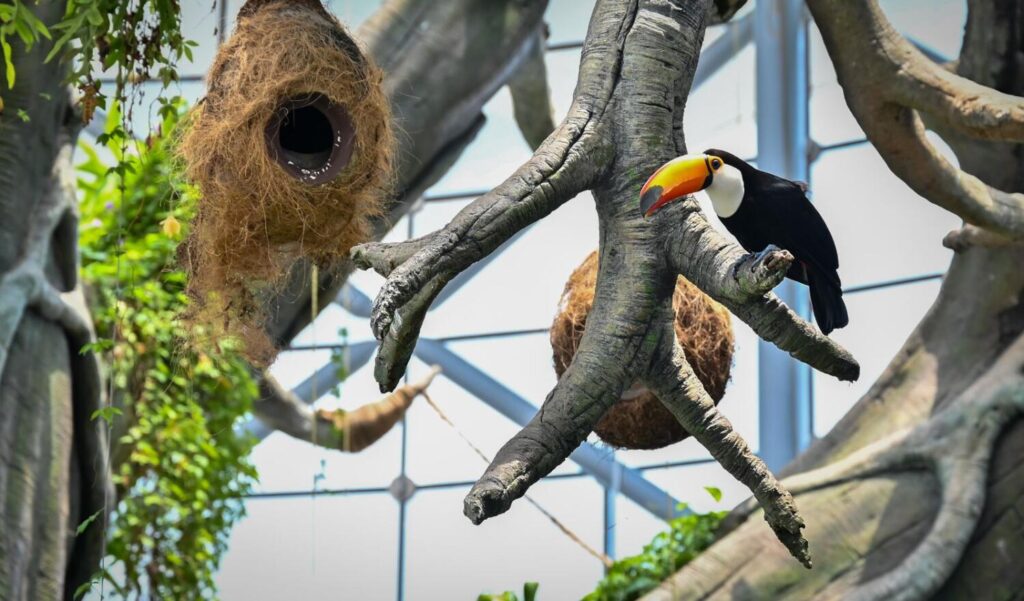 ۱. لایه آسمان (Canopy): این بالاترین لایه در جنگل است که نور بیشتری دریافت می‌کند و به محل زندگی پرندگان، پروانه‌ها، و سایر موجودات میوه‌خوار تبدیل شده است. بازدیدکنندگان در این بخش می‌توانند از پل‌های معلق به تماشای پرندگان و دیگر موجودات آزاد پرواز بپردازند و احساس بودن در جنگل‌های بارانی واقعی را تجربه کنند.