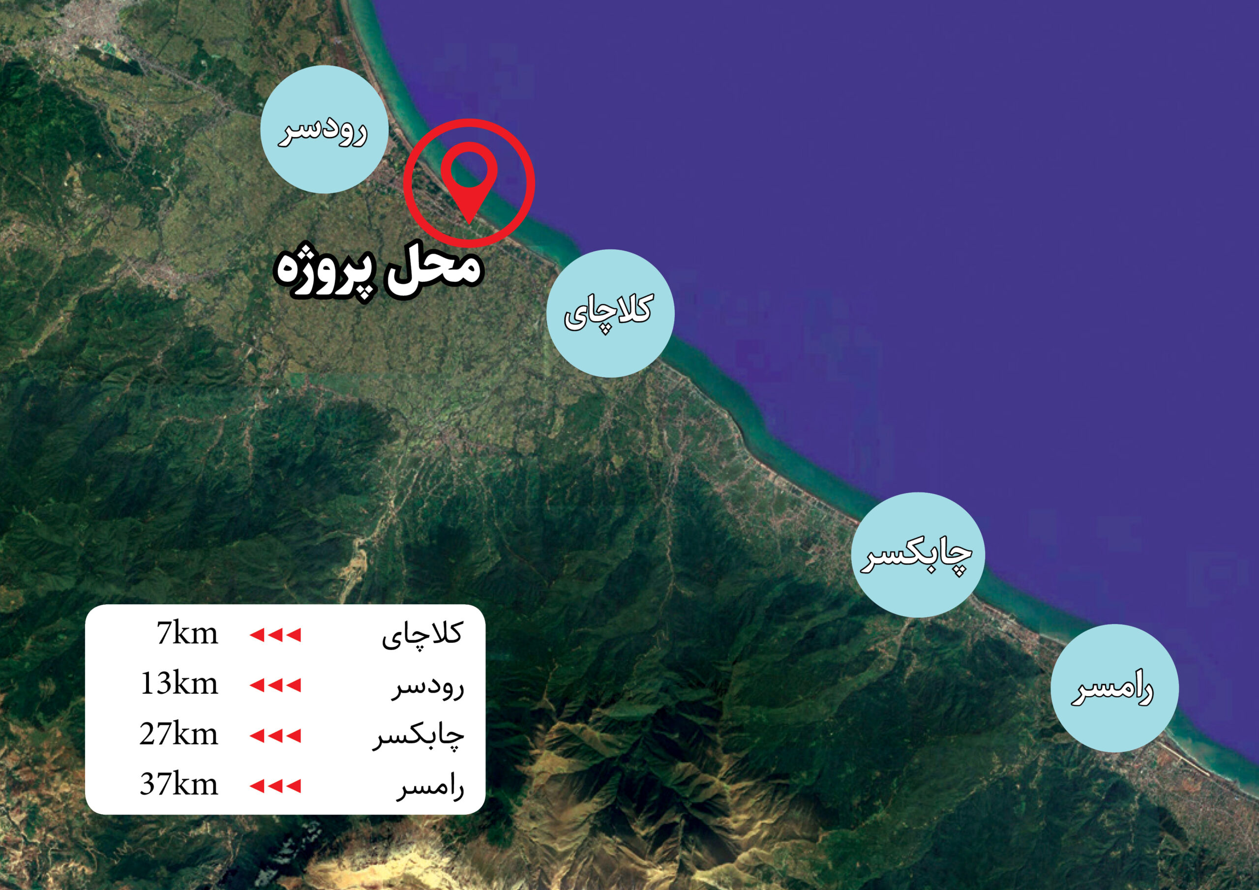 موقعیت عرصه نسبت به بزرگراه رودسر به رامسر