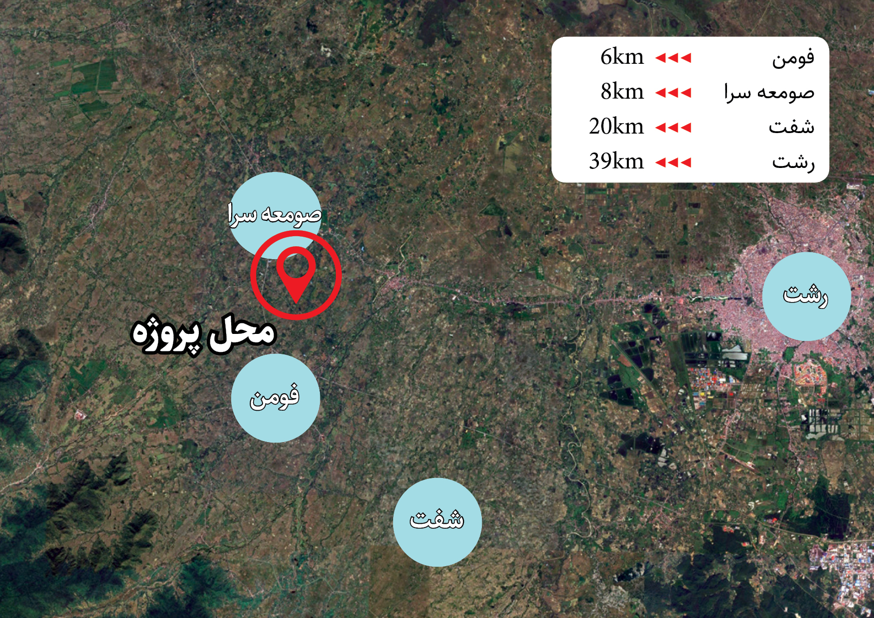 موقعیت عرصه گردشگری فومن نسبت به شهرهای همجوار