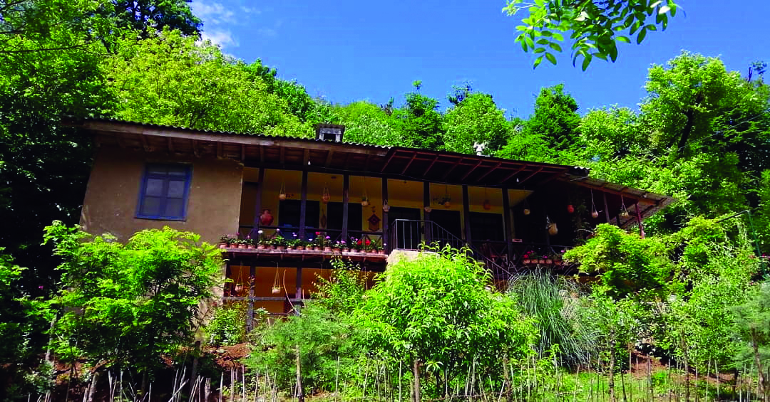 نمای اقامتگاه از سمت جنگل و شالیزار