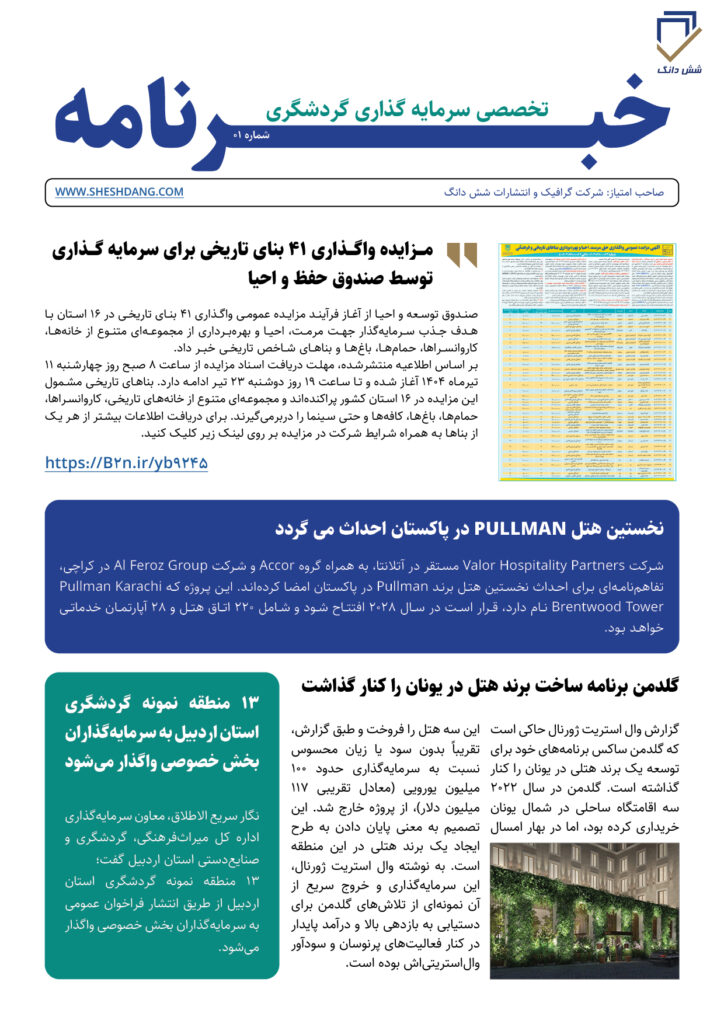 شماره اول خبرنامه «شش دانگ» منتشر شد | صدایی تازه در سرمایهگذاری گردشگری ایران
