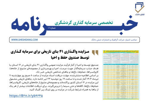 - مزایده واگذاری ۴۱ بنای تاریخی توسط صندوق توسعه و احیای بناهای فرهنگی در ۱۶ استان کشور